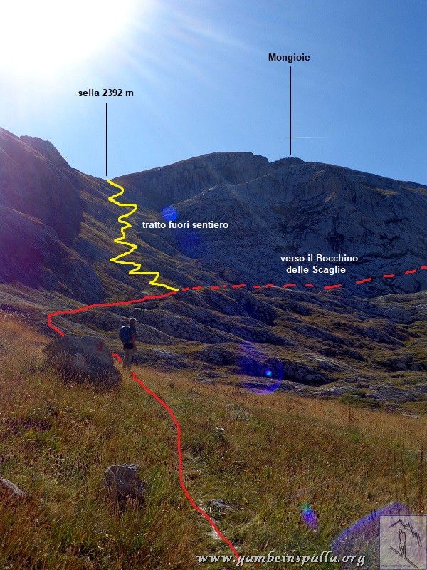 verso destra, le tracce (labili ma segnalate) giungono sul ciglio di un