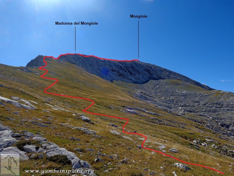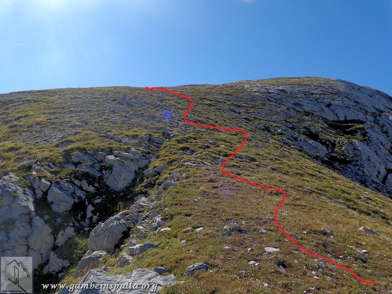 una marcata traccia di sentiero segnalata che raggiunge la vetta