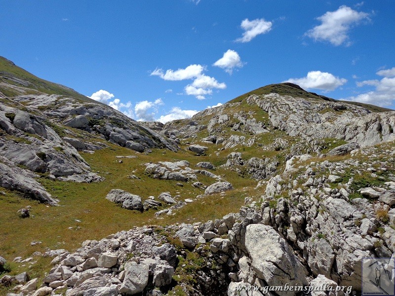 opposta, proseguendo in discesa diagonale per una serie di valloncelli