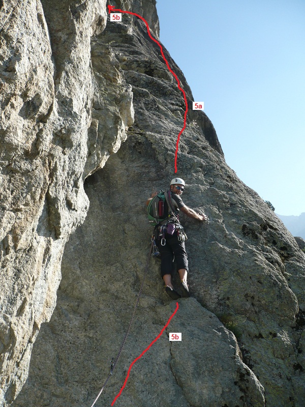 filo di spigolo, dove è più articolata (5a). Raggiunta la