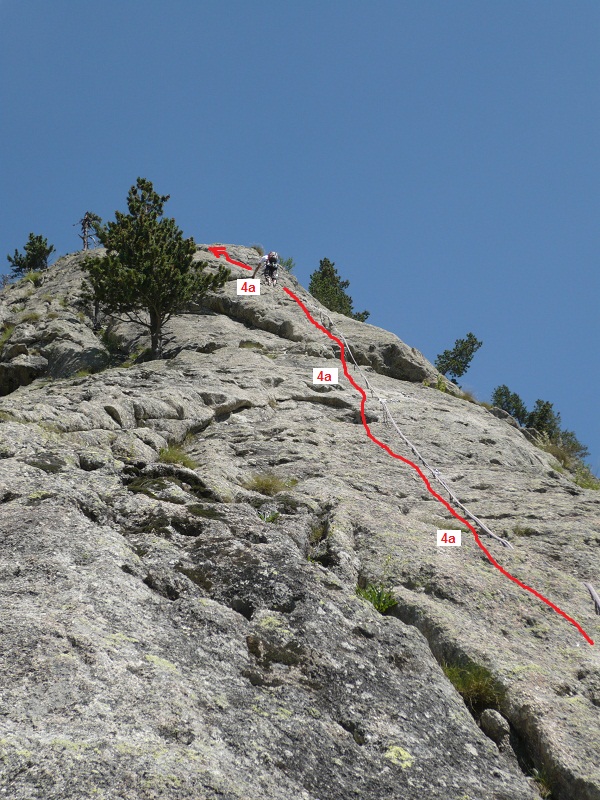 verso sinistra, si sale una fessurina fino ad un forcellino (4b) e,