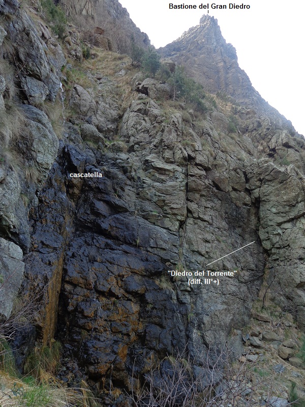 - Si può scalare l'incombente paretina (12 m, 3 chiodi vecchi, all'inizio