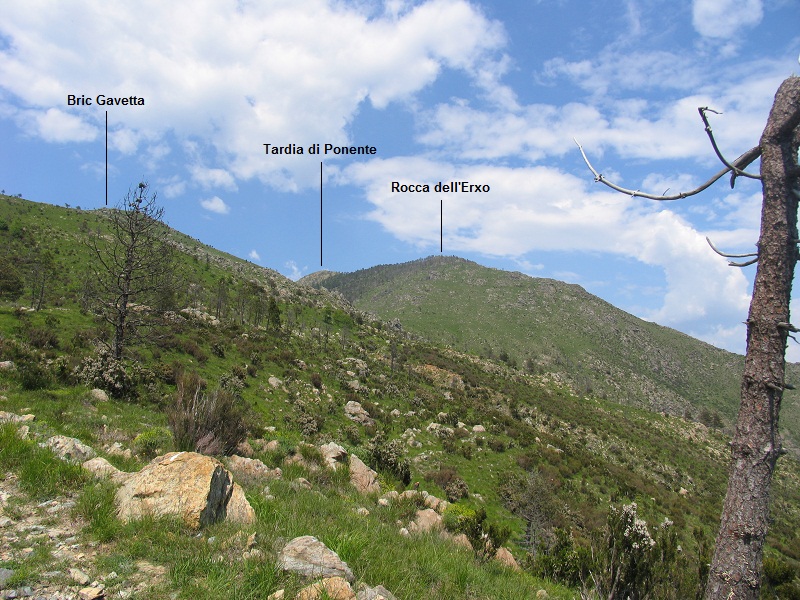 aperto fra il Bric Gavetta (781 m, a sinistra) e la Rocca dell'Èrxo (898 m, a destra). Appare alla vista il versante