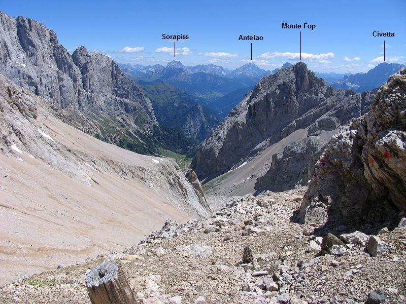 (3054 m) che precede la più bassa cresta delle Cime di Ombretta e