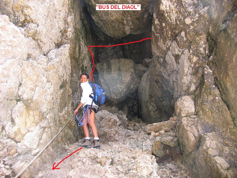passa sotto detto masso ("Bus del Diàol"), dopo di che, con