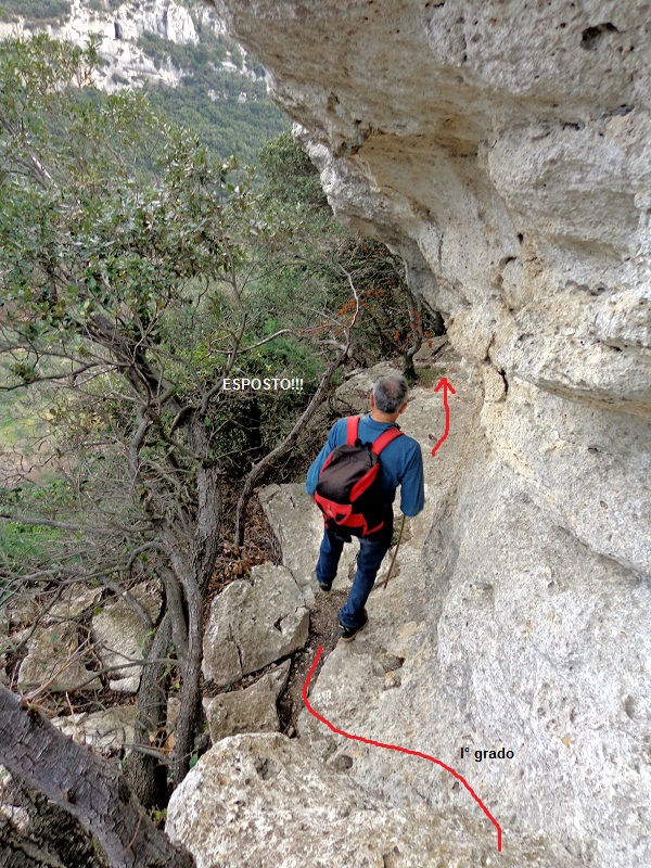 Lungo un ampio cengione inclinato il sentiero scende rasentando le